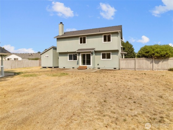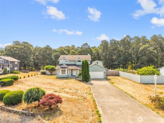 Welcome to this spacious 4 bedroom, 2.5 bathroom home with 2,110 sq. ft. of living space. Thoughtfully designed, it includes a main-floor office or 5th bedroom, perfect for guests or remote work. Nestled on .8 of a fully fenced acre. The attached 2-car garage provides convenience, while the detached garage with a finished bonus room upstairs offers endless possibilities—game room, studio, or potential ADU. Enjoy RV parking, ample storage, and room to spread out. Inside, you’ll find fresh paint and brand-new carpet throughout, making this home move-in ready. Whether you’re looking for space to grow, a place to work from home, or multi-generational living potential, this property has it all. 3 bedroom septic.