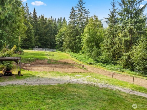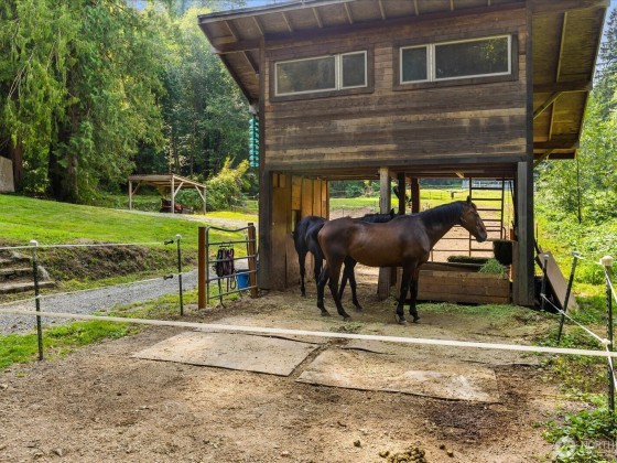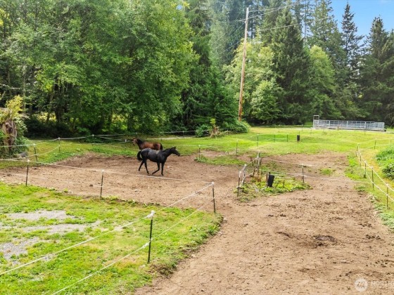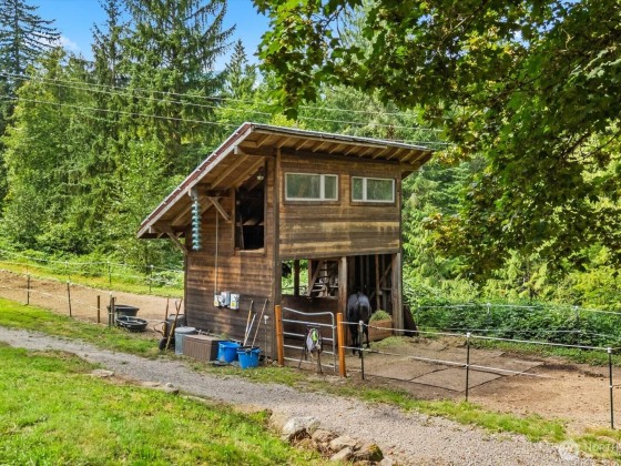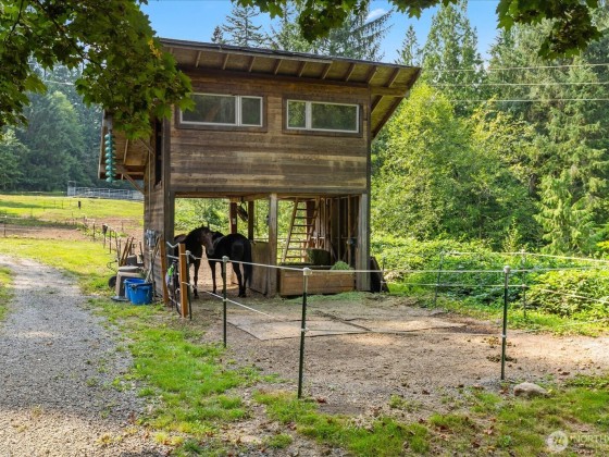 Experience peaceful country living with modern amenities on this 3.5-acre property perfect for horses and hobby farming. The property includes your own gated entrance, an exercise arena, 2 pastures, multiple workshops with power and water (one EV/RV ready), a run in shelter with hay loft and a fully fenced front yard for your chickens and dogs! The charming home offers updated comforts, including new appliances, mini split for AC/heat, a wood stove, and a separate-entrance basement with ADU potential. Located just minutes from Rattlesnake Lake, downtown North Bend, top-rated Snoqualmie Valley schools, and endless trails, with a short commute to Seattle or Bellevue — this is the best of Northwest living!