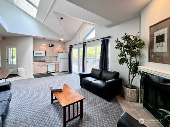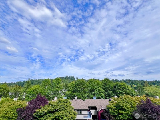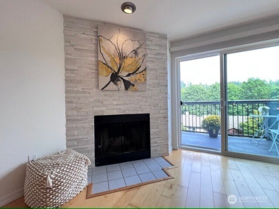 Top-Floor Updated 2BR/1.75BA Regentwood Condo! Refreshed w/hrdwd flrs, fresh paint, & upgraded kitchen w/SS appls, granite counters, glass tile backsplash, breakfast bar, & under-sink water filter. Open living/dining w/wood-burning fireplace opens to full-length deck w/territorial views—perfect for morning coffee. Primary suite has mirrored closets, private balcony, & ensuite bath; 2nd bdrm has 2 closets. Updates incl new windows, sliders, & grg door. Highlights: top-floor privacy, 2 parking spaces (grg + assigned), newer W/D, water heater, & appls. HOA covers W/S/G & ext. Community clubhouse, gym, & sports court. In acclaimed Northshore SD w/easy access to 522, 405, Kirkland, UW Bothell, Totem Lake, & Burke-Gilman Trail. No rental cap!