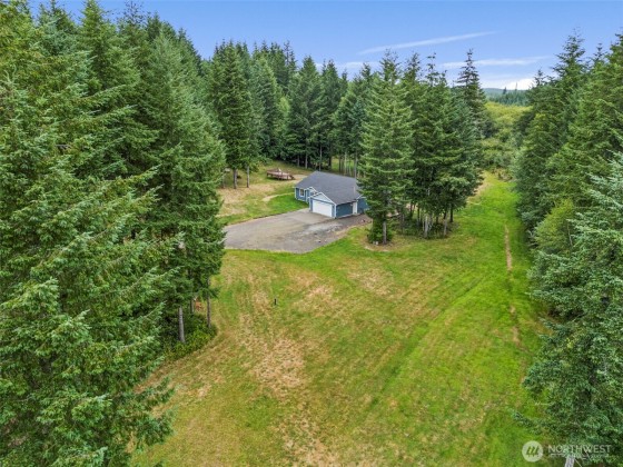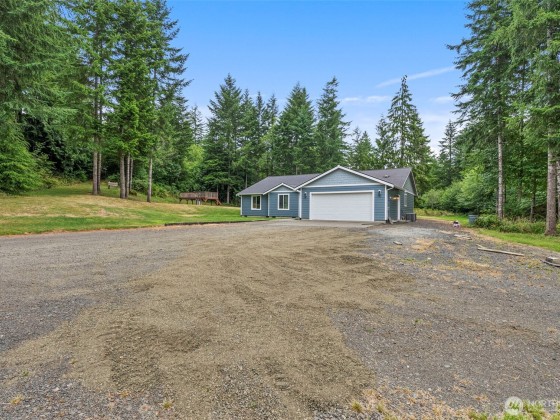 Enjoy peaceful living in this charming single-level home on 2.94+/- wooded acres. Newly painted home features 3-bedrooms and 2 bathrooms, including a spacious primary suite with a walk-in closet, and two additional well-sized bedrooms. The kitchen offers granite countertops and stainless steel appliances, ideal for cooking and entertaining. Heat pump allows you to stay comfortable year-round! Unwind outdoors with a covered patio or sit by the cozy fire pit surrounded by nature. This home blends modern comfort with tranquil, wooded privacy.