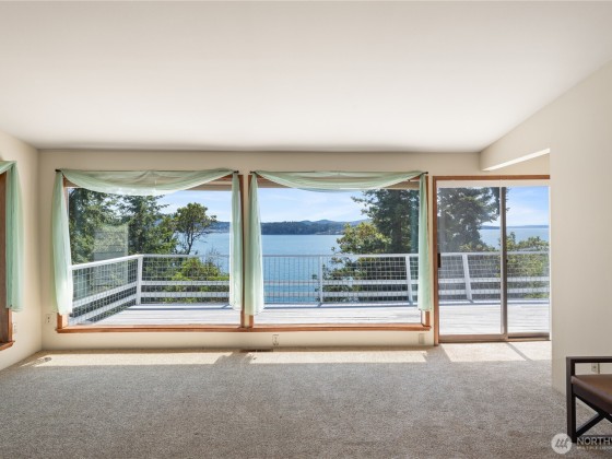 Enjoy breathtaking Guemes Channel views from this south-facing, high bank, waterfront home, perched on a rocky knoll. The main level offers an open-concept great room, with access to a large deck for entertaining and watching the sailboat races, a primary suite with ensuite bath, plus a second bedroom with hall bath. Downstairs, a versatile recreation room features a ¾ bath, laundry hookup, which is perfect for overflow company or rental income. The oversized garage boasts water vistas and a handy storage loft. Community perks: Three private beaches—Cooks Cove (boat ramp), Long Bay & Deadman’s Cove • Nearby Guemes Mountain trailhead • Act now to own this scenic, affordable waterfront retreat!