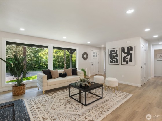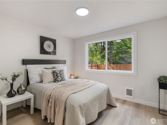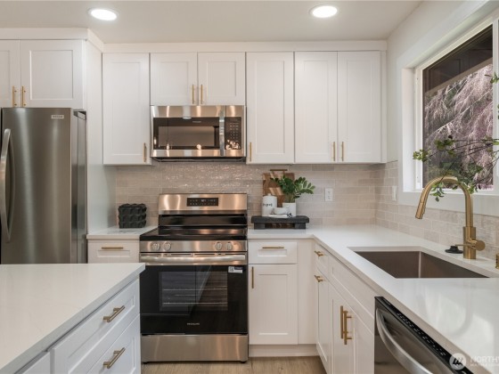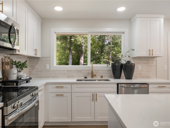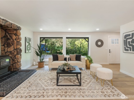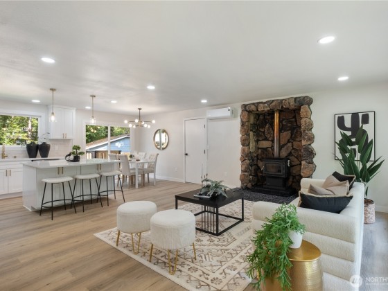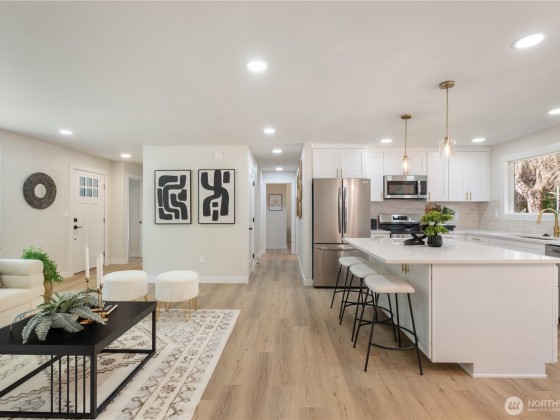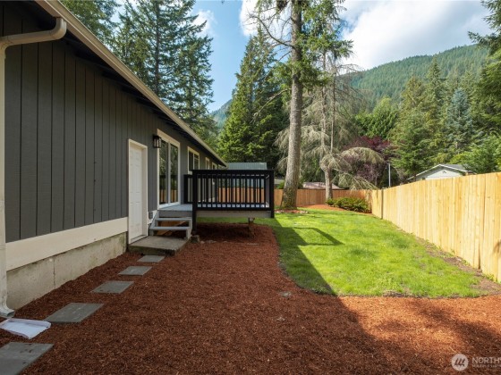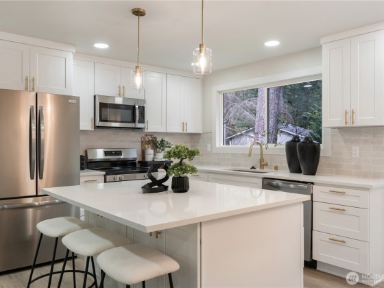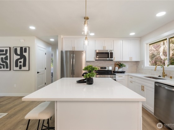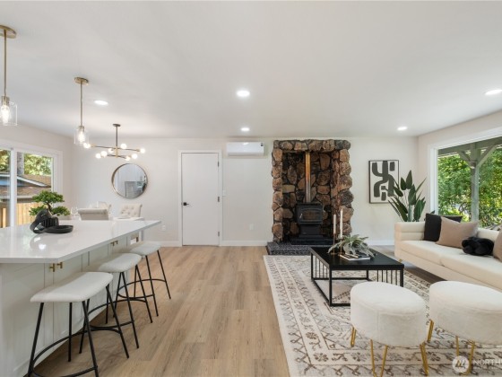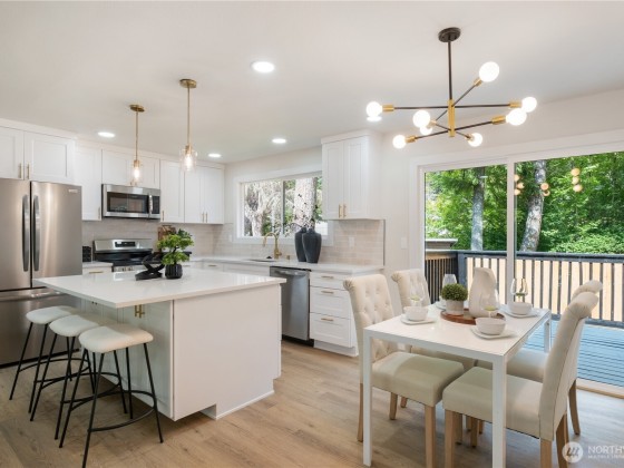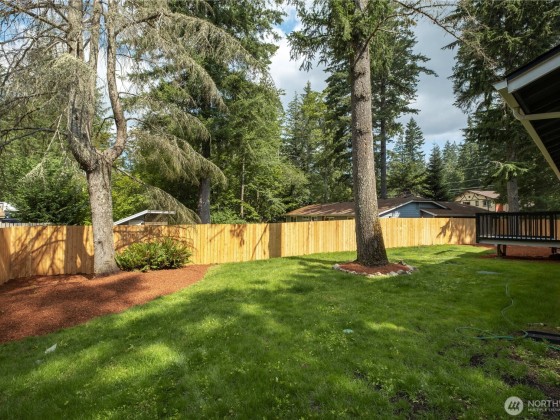 Beautifully updated 3-bedroom, 2-bath rambler on a fully fenced 1/4-acre corner lot in the desirable Wilderness Rim neighborhood. This 1,200 sq ft home features a brand new roof, brand new kitchen with quartz countertops, tile backsplash, new cabinets, sink, and durable LVP flooring. Enjoy the peaceful setting just a 3-minute walk to Brewster Lake with its covered picnic area, playground, BBQs, and fire pit. Rattlesnake Lake and hiking trails are only 5 minutes away, and downtown Bellevue is a convenient 25-minute drive. Perfect blend of modern comfort and outdoor adventure in a quiet, sought-after community.