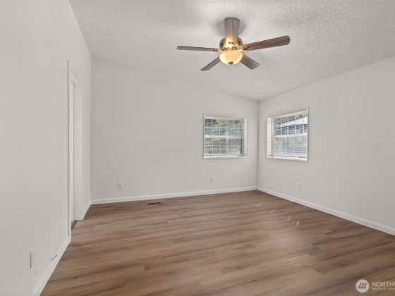 Welcome home to this move-in ready 1,676 sq ft manufactured home on a freshly landscaped .31-acre lot. Inside, you’ll find fresh paint, new LVP flooring, updated trim, blinds, and interior doors—all complemented by a new roof and recently serviced heat pump and furnace for peace of mind. The kitchen and living areas flow easily, while the Trex deck expands your living space outdoors including a covered patio. Two sheds offer plenty of storage, including an oversized shed perfect for a home office, gym, or creative studio. Vinyl siding keeps maintenance simple, and the location strikes the perfect balance—close to I-5 and everyday conveniences, yet tucked into a quiet, rural-feeling neighborhood.