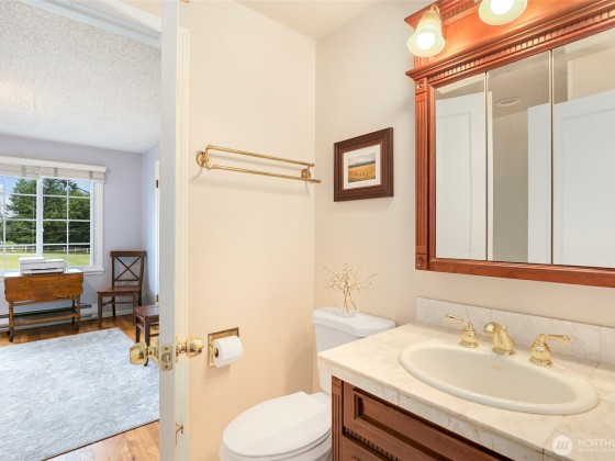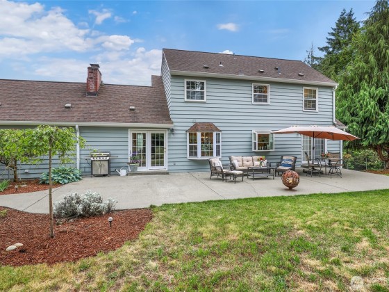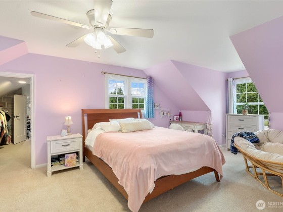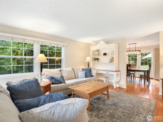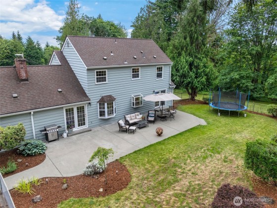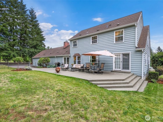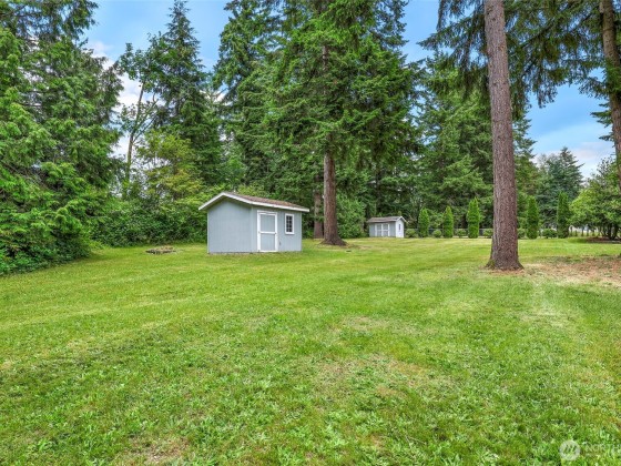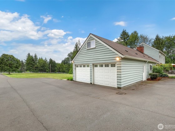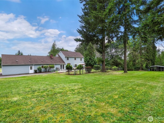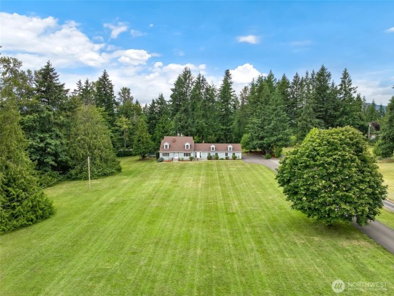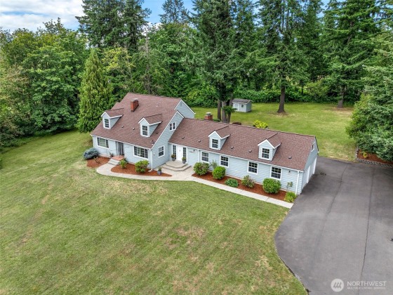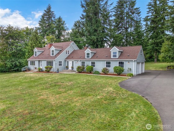 Paved private drive leads to a private & serene park-like setting. Set on nearly 4 level acres-stately 4-bedroom w/traditional styling & versatility. Main level w/2 bedrooms—one with an adjoining ¾ bath—while the upstairs primary suite features sitting area & newly remodeled, spa-inspired bath. 4th bedroom offers private bath, + a 500+ sq ft finished bonus room, ideal for office, studio, business space. Formal living & dining share a fireplace, and family room—complete w/2nd fireplace—opens to kitchen, breakfast nook, & beverage center. French doors to full-length patio & yard. Incredible laundry room! Outbuildings, workshop, dog run, & extensive RV/boat parking for flexibility. Private well,ez access to Hwy 18, & top-rated Tahoma Schools.