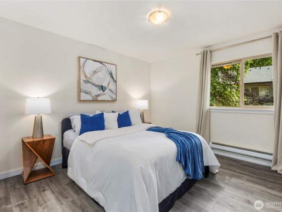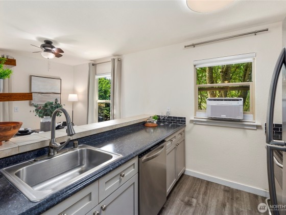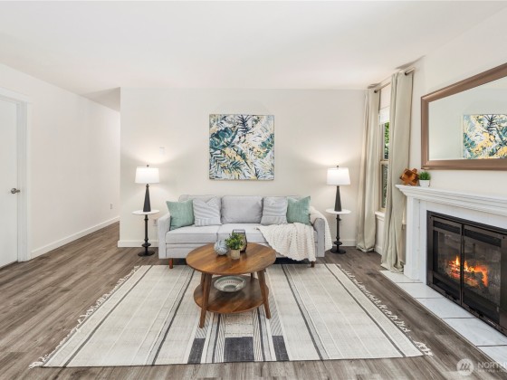 Recently renovated corner unit condo in prime Redmond location! This 2-bed, 1.75 bath home features brand-new interior paint and LVP flooring. Updated kitchen with stylish backsplash and new stainless steel dishwasher and fridge. Relax by the cozy fireplace or on the private deck. Primary suite includes a walk-in closet and en-suite bathroom. 2nd bedroom offers the opportunity for extra sleeping quarters and/or a home office. Stay cool with a new AC unit. Enjoy plenty of storage with the utility room/laundry room w/ full size W/D. Designated parking, ample guest spots, and community amenities including a basketball court, playground, and pool. Close to Downtown Redmond, Microsoft, and Google. Easy access to 520 & 405!