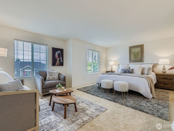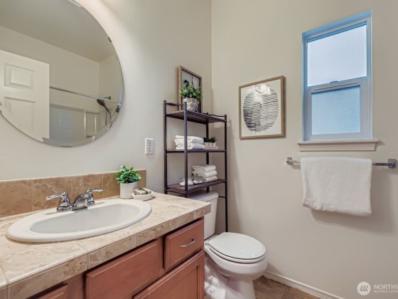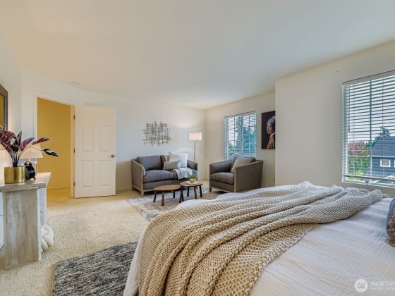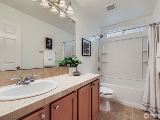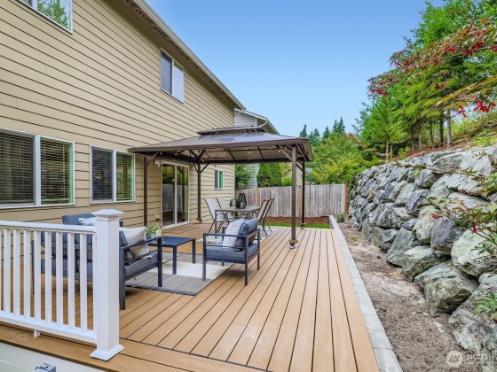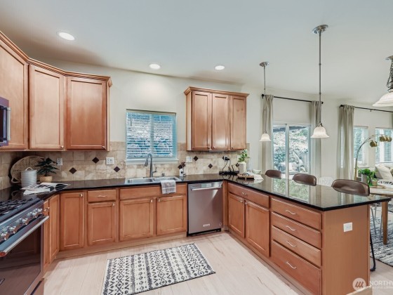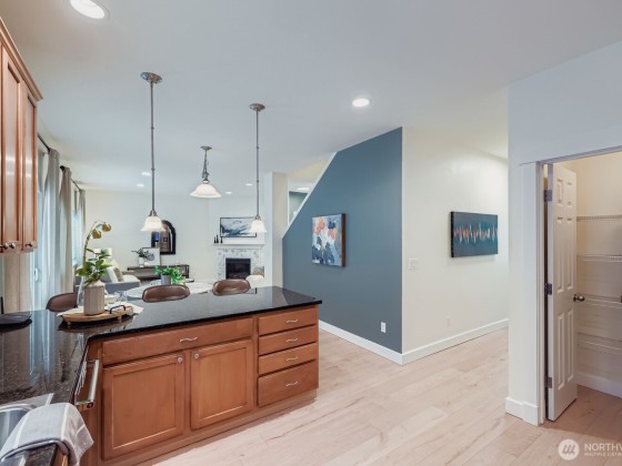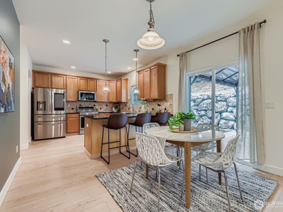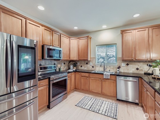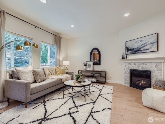 Perched in the desirable Woodridge at North Creek, this beautifully maintained home blends thoughtful design with modern convenience. The main level features wide-plank floors, a bright open layout, gas fireplace, & a chef’s kitchen with granite counters: SS appliances, gas cooktop, walk-in pantry, & smart fridge. A main floor bedroom & full bath offer flexibility for guests or office. Upstairs includes a spacious loft, two more bedrooms, full bath, laundry room, & a large primary suite with sunset views, oversized walk-in closet, dual sinks, & soaking tub. Enjoy central A/C, Level 2 EV outlet, 1 gig internet, landscaped yard with deck & gazebo, community trails, playground, & easy access to I-405. Microsoft & Amazon shuttle on 120th Ave NE
