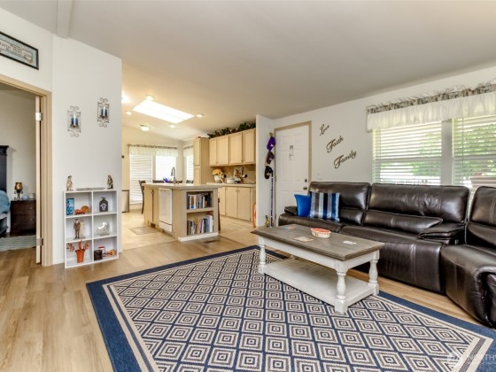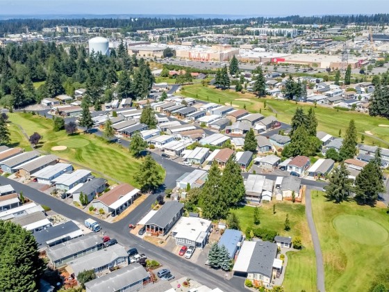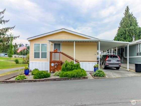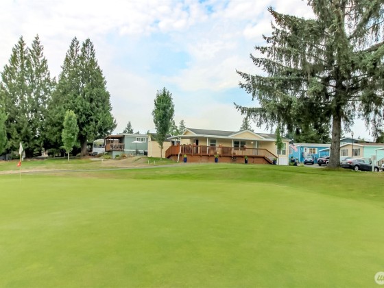 Life is Good at the 55+ Belmor Park! 3-bedroom 2-bathroom Golf view unit with recent upgrades to flooring, refrigerator & wraparound covered porch. Enjoy watching & playing golf with friends just steps out of your front door. Located right next to guest parking spaces! Large unit with spacious living room, open floorplan & chef's kitchen. Primary suite has a 5-piece bath en suite bathroom. Spacious bedrooms, one is a junior primary suite with a walk-in closet. This gated community features a clubhouse w/a year-round swimming pool, games, library, pool table, sauna, spa, fitness & dog park. Located nearby dining, a movie theater & shopping at the mall across the street, walk to the new light rail. Lots of storage=large shed & under the home.