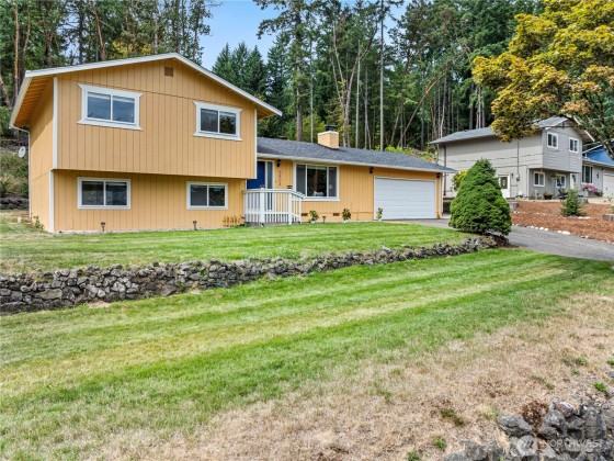 Welcome to this well cared for tri-level Illahee home, where you can enjoy watching the sunrise over the bay. The main floor features open concept living with cozy fireplace. Entertaining made easy with large granite island and french doors leading out to your back patio. Upstairs, you will find three bedrooms with large full bathroom including a double sink vanity. Heading downstairs leads to a versatile flex space/rec room with attached office or potential fourth bedroom complete with closet. Outside, you will find plenty of room to park ALL the things with attached two car garage, driveway and additional off street parking. All of this, quietly located on a dead end street, conveniently located between Bremerton and Silverdale.