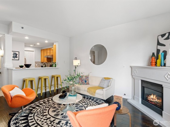 Welcome to the coveted Ellington Condominiums, where luxury meets convenience in the heart of Belltown. This spacious 1BR home is truly move-in ready, featuring newer hardwood floors & window coverings, fresh paint, & updated appliances. The open layout offers modern comfort perfect for entertaining while the spacious bedroom features a walk-in closet Cozy up by the fireplace in the winter & enjoy the summer weather from your private balcony. At Ellington, residents enjoy premier amenities including 24/7 concierge, fitness center, hot tub, guest suites, & refined common areas—all just steps from the waterfront, the Olympic Sculpture Park & Seattle’s finest dining, shopping, and entertainment! Experience elevated urban living at its best.