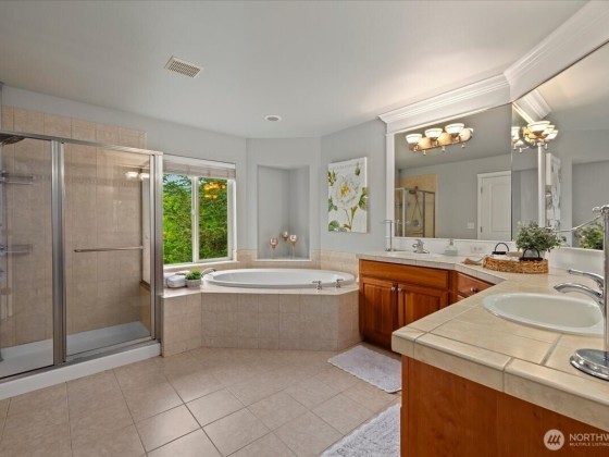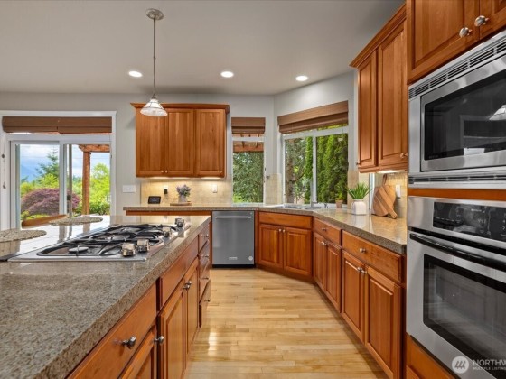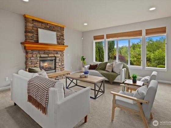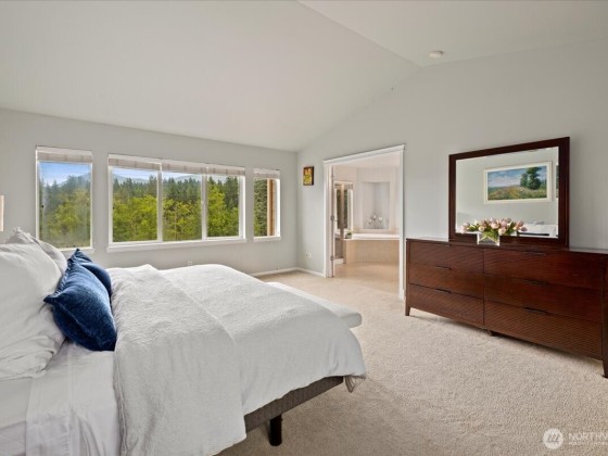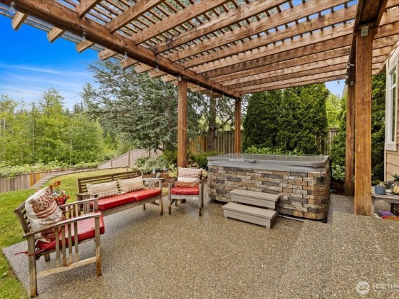 Enjoy panoramic views of Mt. Si and the Cascade Mountains from nearly every corner of this elegant Snoqualmie Ridge home. Step into a grand foyer with soaring ceilings, where open-concept living and a spacious kitchen island invite connection and comfort. The layout flows effortlessly to an outdoor entertaining space with a saltwater hot tub and breathtaking natural backdrop. Nestled in a peaceful part of the community, this home offers a rare blend of privacy and convenience. The expansive primary suite is a true sanctuary with vaulted ceilings, spa-inspired bath, and awe-inspiring vistas, while a private guest suite with its own balcony adds comfort and charm. Unbeatable location near parks, community events, dining and so much more.