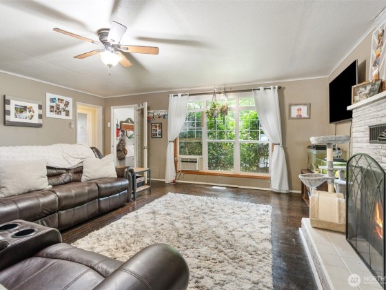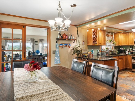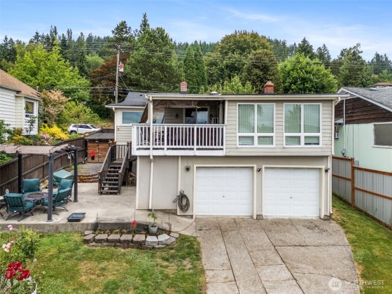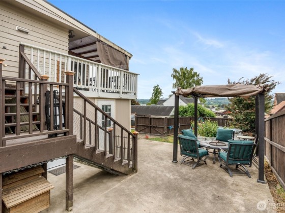Spacious 4-bedroom home with 2,000+ sqft offering city & Chehalis Hills views. Updates include newer roof, furnace, advanced full security system, & finished basement w/ updated electrical, covering all big-ticket items. Entry opens to a large living room w/ wood-burning fireplace, flowing into dining area & kitchen w/ granite counters, slate flooring, & stainless appliances. French doors lead to a sunroom & covered deck w/ sweeping views. Private backyard has cedar fence, flower bed, chicken coop, covered patio, & ample storage. Gated entry to 2-car garage. Conveniently near I-5, schools, shopping, & all amenities. This home blends comfort, convenience, & charm in a well-established neighborhood.