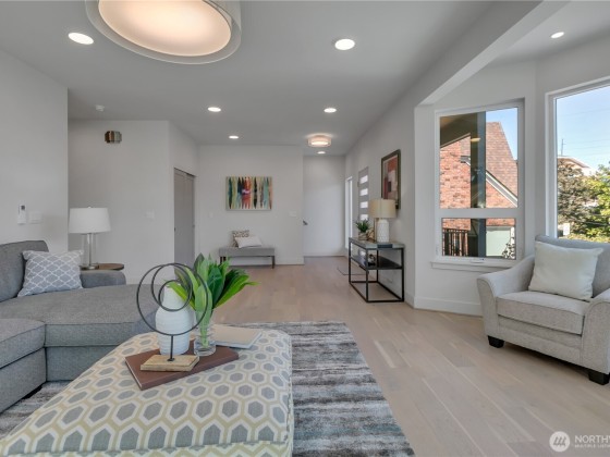 Luxury 2023-built 2-story Penthouse offering 2,620 sf, 4Br/3.25Bth, & massive rooftop deck with sweeping Lake Union, Ship Canal & Cascade views. Light-filled interiors feature high ceilings, hardwood floors, & chef’s kitchen with Bertazzoni gas range, quartz counters, eating bar & walk-in pantry. Main flr guest bedroom & lavish 3/4 bath. Primary suite boasts spa-like 6-piece bath w/heated flrs, dual walk-in closets & serene vistas. Bow window design outlining views in living room & 2nd bedrm w/double closets. Includes EV charger & tandem 2-car prkg. Prime Wallingford location near Gas Works Pk, Burke Gilman Trail, Fremont, Green Lake, JSIS, Children's, downtown, SLU, I-5 & Hwy 99. Close to dining, shops, & transit.82 Walkscore/81 Bikescore!