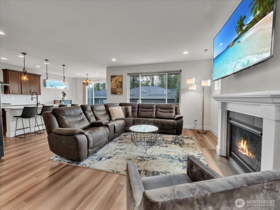 Step into a lifestyle of Elegance & ease w/ the Andover II daylight plan w/ modern living spaces. Features 4 beds, 3.5 spa like baths, & a versatile loft perfect for a 5th bedroom. The main level has a sunlit family room w/ gas fireplace & chef’s kitchen w/ large island, modern appliances, & ample storage. Enjoy beautiful sunsets from the covered deck & stairs leading to a fenced backyard. The daylight basement offers a private guest suite, full bath, & a spacious rec room opening to a 2nd composite deck. Additionally, include a wide side yard w/gate access. Hardwired Ethernet & coax in every room for connectivity. Near top-rated schools and shopping, in a vibrant 36-home development w/ holiday events. A perfect blend of luxury & charm!