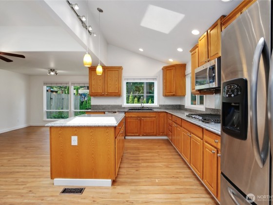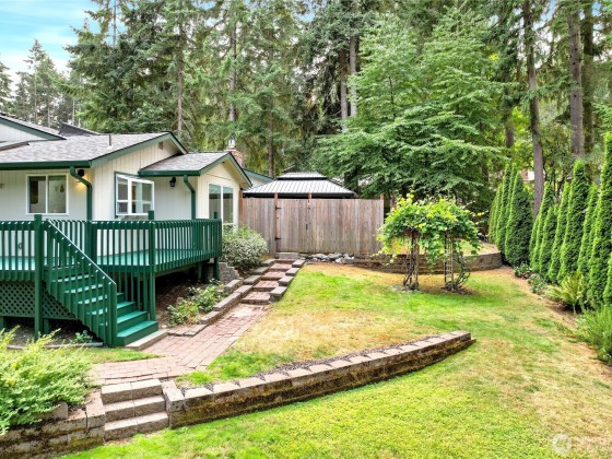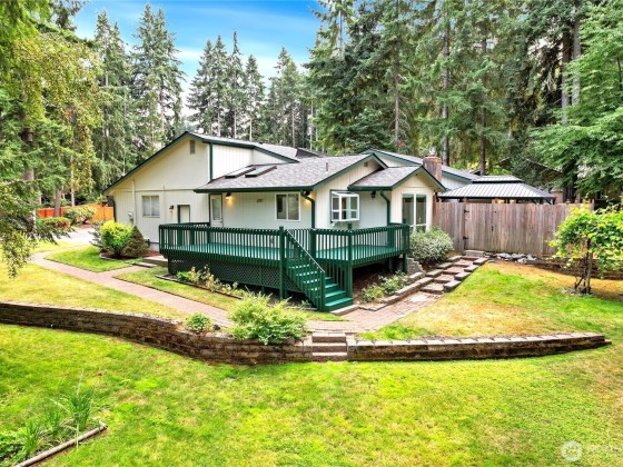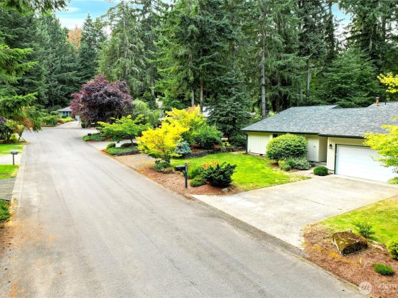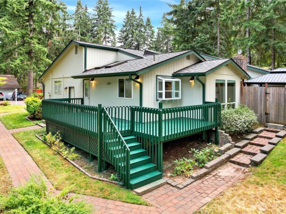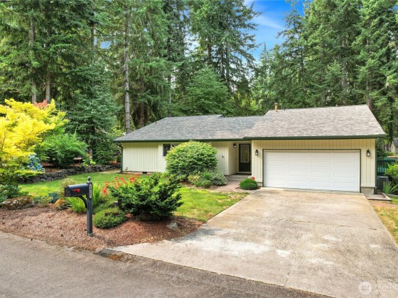 ONE-level living in this beautifully maintained home! Nestled in a quiet neighborhood just minutes from downtown historic Gig Harbor, shopping, restaurants, & freeway access— location offers unbeatable convenience. Step inside to a light-filled interior featuring vaulted ceilings, freshly painted & skylights that fill the space w/natural light. Generous kitchen has abundant cabinetry, butler’s prep area, & access to deck & patio. Kitchen flows seamlessly into the great room anchored by charming fireplace & French doors leading to patio. Huge primary suite w/walk-in closet, ensuite bathroom & French doors to fenced patio w/pergola—ideal for 4 season enjoyment. Plus 2 more spacious bedrooms, 2 car garage, Irrigated landscaping! Move-in ready!