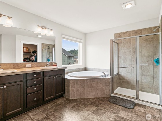 Here me out, picture your daily life with walking trails right next to the river? Or looking outside & seeing Mt.Rainier in all the glory! Orting is BEAUTIFUL. How about a backyard oasis? This gem sits in a quiet cul de sac, open floor plan with so much space for all of your activities. We have a bedroom & 3/4 bath on the main floor, multi-gen? The kitchen offers SS appliances, Granite counter tops. Head upstairs to find a huge primary suite with a 5 piece bath, head down the hall to 3 more bedrooms, full bath & a massive bonus room. Village Green offers playgrounds & parks. You can walk to school, all amenities are mins away, dinner, shop, 410 is mins away, Sounder train, too. Some fresh paint, freshly cleaned carpets! New photos to come.