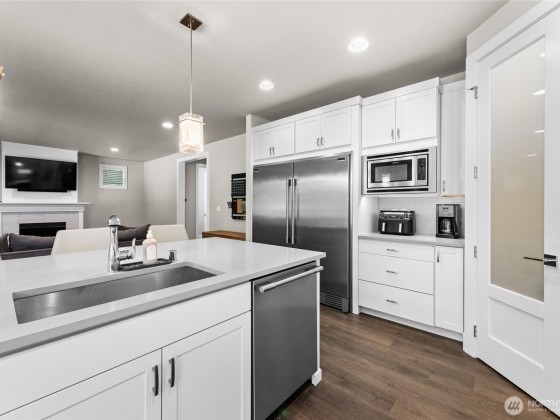 Meticulously maintained and beautifully appointed home offers the perfect balance of elegance and comfort. Nestled in a quiet Gig Harbor neighborhood just minutes from downtown, it features 4 bedrooms and 2.5 baths, including a serene primary retreat with a spa-inspired 5-piece bath & expansive walk-in closet. The chef’s kitchen boasts an oversized fridge/freezer combo, walk-in pantry, oversized island, and seamless flow into the living room with soaring ceilings, floor-to-ceiling fireplace, and abundant natural light. Outdoors, enjoy a year-round covered deck with a stone fireplace, set amid mature landscaping for a private oasis ideal for entertaining or relaxing. HOA dues cover both front and back yard maintenance. Truly turn-key living.