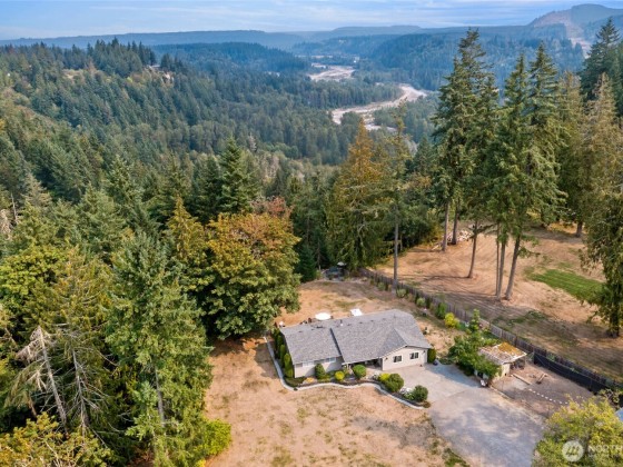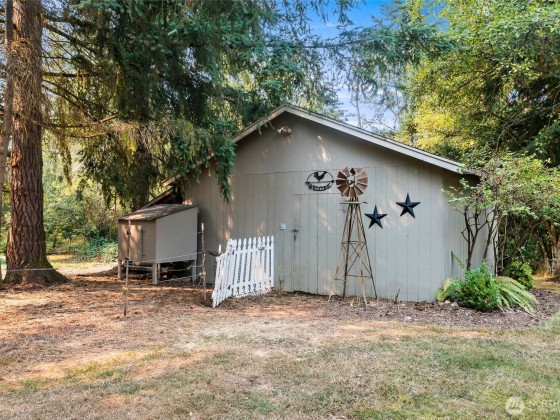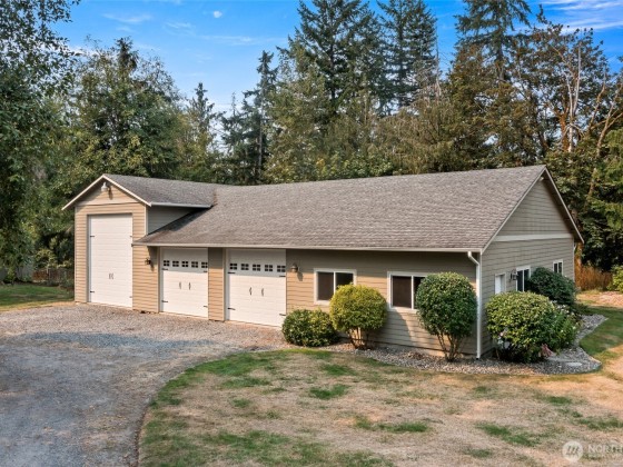 Experience refined country living on this private 5-acres. The updated home features a designer kitchen w/ custom cabinetry, granite counters, premium appliances, new flooring, efficient mini-split, and a 46x20 entertaining deck and views of Mount Rainier. Outdoors you’ll find landscaped grounds, gardens, orchard with apples, pears, plums, figs, a thriving raspberry patch, greenhouse, chicken coops, two-stall barn, and covered kennel—perfect for hobby farm living. The 40x66 shop is a showpiece with three oversized bays (including 14’ RV door), 220V power, RV hookups, a 20x40 multipurpose room for your ADU ideas, and expansive storage. A rare opportunity to own a property combining privacy, beauty, and functionality.