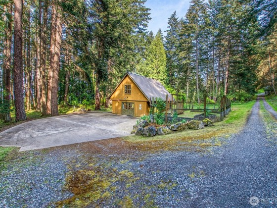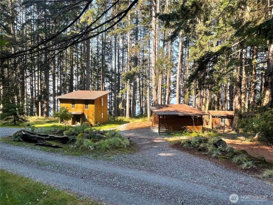 Rare 15 acres of private waterfront property and +/- 1033' of frontage facing the mainland mountains and Matia Island with the potential to create 3 lots. Mature forest, seasonal stream w/ a waterfall and meandering shoreline paths set the stage for your island retreat just 15 minutes from Eastsound. Two existing cabins each w/ 2 bedrms/1 bath & full kitchens for a total of 2165 sf of living space. A main house site is cleared & the drawings are developed w/ septic installed for 7 bedrms (total) should you someday build another home. Chicken coup, kennel/dog run, carport, storage building, patio w/ fire pit, irrigated/fenced raised bed garden and level land to play. Rent one home and occupy the other or enjoy space for friends and family.
