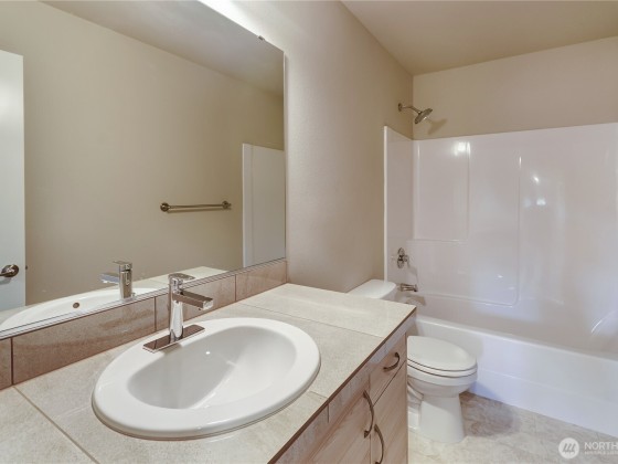 The Preserve in Tacoma’s Fredrickson area by Rush Residential offers affordable homes with luxury features in a prime location. Lot 19 showcases the Penrose plan with 3 bedrooms and 2.75 baths. Enjoy a spacious kitchen with quartz counters, full-height subway tile backsplash, stainless steel appliances, and custom soft-close cabinetry. Engineered plank flooring enhances the entry, kitchen/nook, powder room, and great room. Additional upscale touches include site-painted millwork, a luxury en-suite with large shower and tile counters, plus blinds, washer/dryer, refrigerator, and A/C. Outdoor features include a covered patio, landscaped, fenced, and irrigated yard. HOA maintains front yard. Easy access to JBLM and freeways.