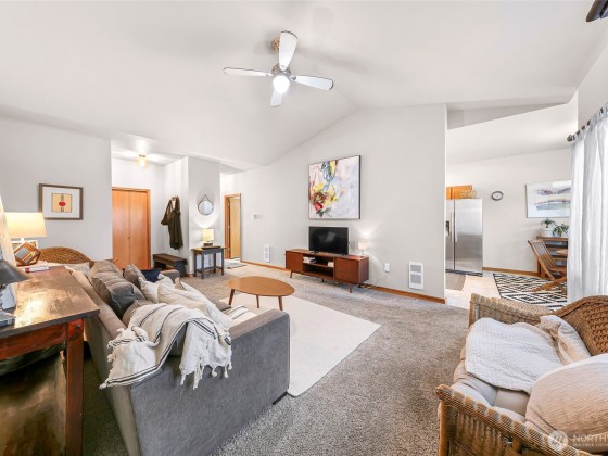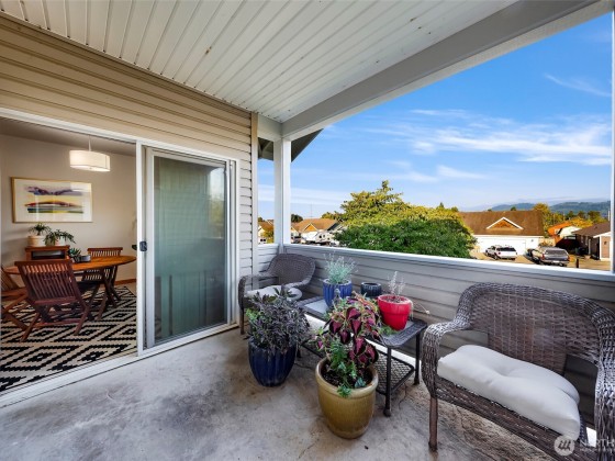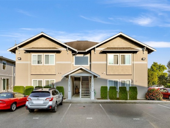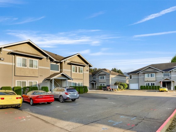 Updated Second Floor Condo in Sumas! New paint, carpet, light fixtures, window coverings, stove. Newer full size washer and dryer and refrigerator. Bright and airy space with vaulted ceilings. The open-concept layout has primary ensuite and 2 dedicated parking spaces. Covered patio has Mount Baker views. Located in a quiet community with low HOA dues that cover water, sewer, garbage, recycling, lawn care, and snow removal. Move in ready—ideal for downsizers, first-time buyers, or investors. Complex is eligible for VA/ FHA and USDA financing.