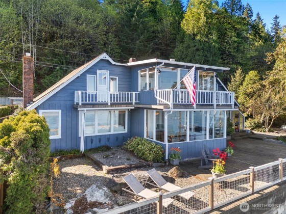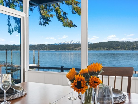 Discover a stunning waterfront retreat on 1.43 acres with 76 feet of low bank waterfront. Enjoy tidelands abundant with oysters and clams, panoramic views of the Olympic Mountains, and unforgettable western exposure sunsets. The home offers water views from nearly every room, creating a peaceful and scenic living experience. Additional features include RV parking and hookups across the street, covered parking, a shop, and a spacious private patio perfect for entertaining or relaxing. This property blends natural beauty, privacy, and lifestyle flexibility-ideal for those seeking a serene waterfront escape.
