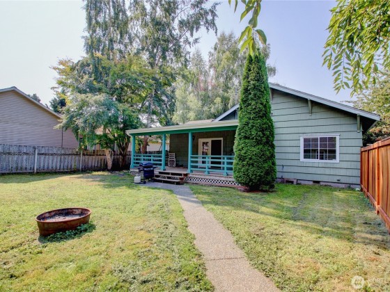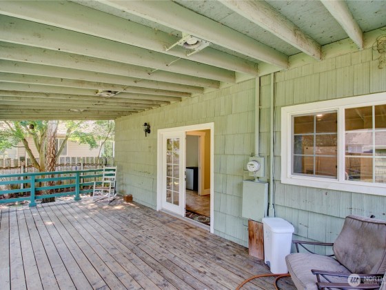 Charming rambler on a spacious corner lot! This home offers potential for a 3rd bedroom if you don’t need a formal dining room. The kitchen features a convenient eating bar and plenty of space for casual dining. Step through French doors to a large, covered deck - perfect for entertaining or relaxing. Enjoy the warmth of natural gas. Wood floors in the living room and bedrooms are ready to be restored to their original shine. With vinyl windows, a fully fenced backyard, brand new gutters and a detached garage, this home is move-in ready!
