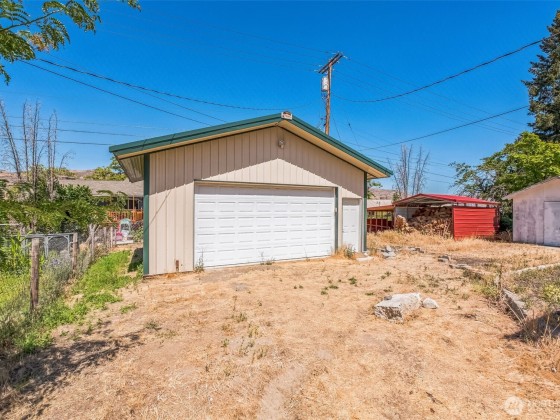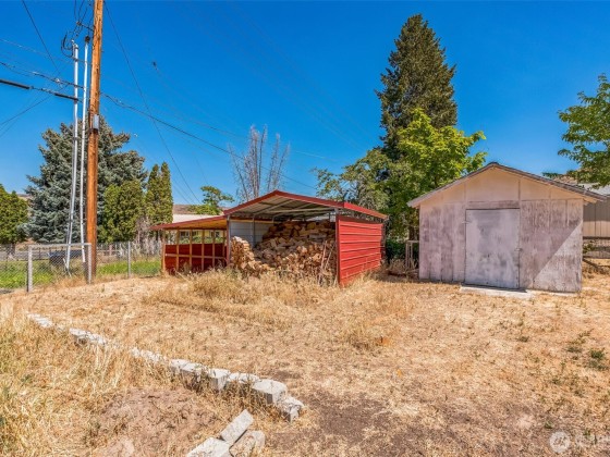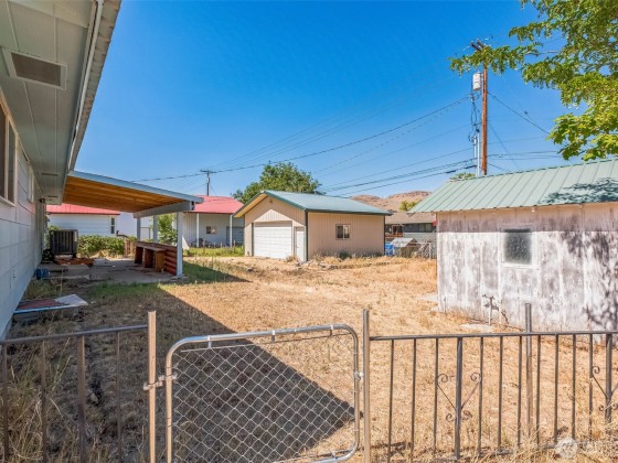 Single-level home waiting for your finishing touches. Features include vinyl double-pane windows, central heating and cooling, a metal roof, and a concrete patio. The attached 1-car garage includes a handy storage room. Enjoy the LARGE 24' x 24' insulated metal shop with power, ideal for projects or extra storage AND a 12' x 10' garden shed for tools. Located near lakes, fishing spots, boat launches, and the outdoor recreation paradise of the Grand Coulee Dam area. This property offers the ability to add your design touch, functionality, and room to grow in a beautiful, adventure-rich setting.