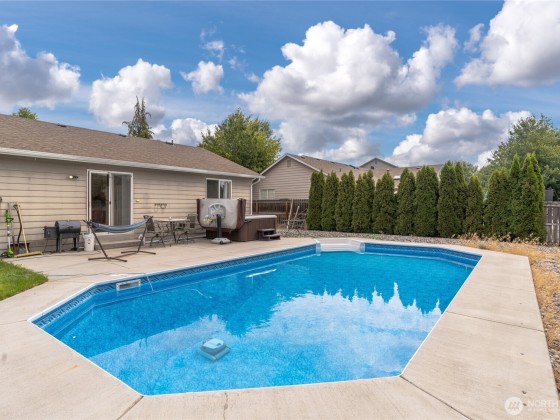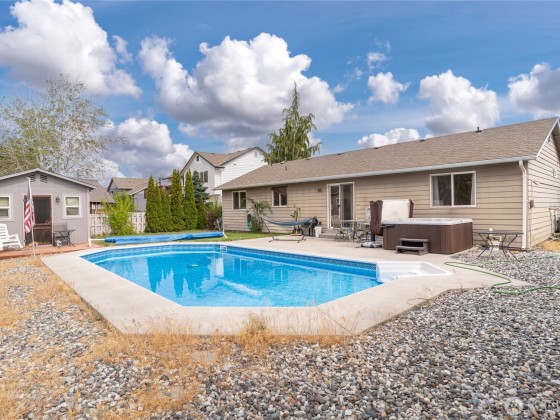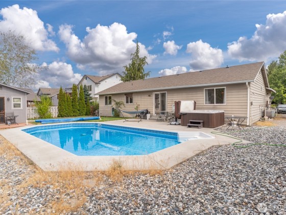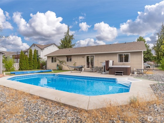 Welcome to this 3-bedroom, 2-bath rambler in a highly sought-after neighborhood! This one-level home offers comfortable living with an open layout, a primary suite featuring a walk-in closet and a full on-suite bathroom. Enjoy outdoor living at its best with a fully fenced yard, in-ground pool, hot tub, automatic sprinkler system and irrigation, perfect for entertaining or relaxing in your private oasis. There's plenty of room for all your toys with RV and boat parking, plus an insulated 2-car garage. Whether you're looking for comfort, convenience, or lifestyle, this home checks all the boxes!