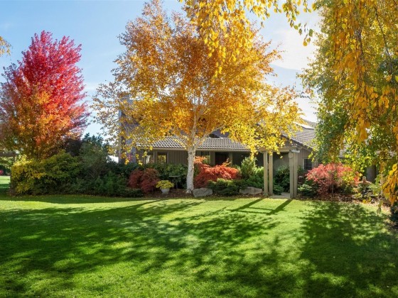 Tucked away on 1.17 private, park-like acres in West Valley, this elegant 4-bed, 3-bath estate offers approximately 3,296 sq ft of refined living. The main level features two spacious living rooms, a formal dining room, home office, and a gourmet kitchen with double ovens, gas cooktop island, and garden window above the sink. Upstairs, the primary suite boasts a walk-in closet, ensuite bath with skylight-lit garden tub and walk-in shower, plus a private deck with views of Mount Adams. Enjoy lush landscaping, mature trees, a fenced garden, and a wrap-around deck perfect for outdoor living.