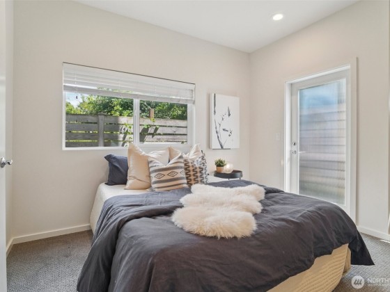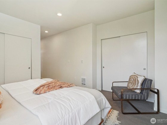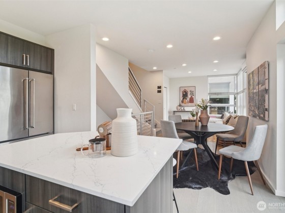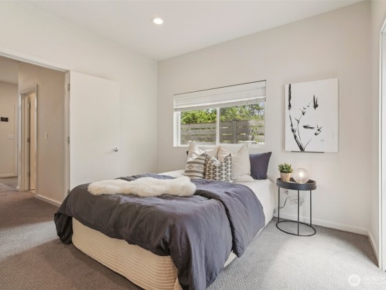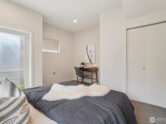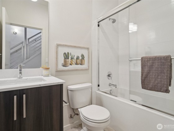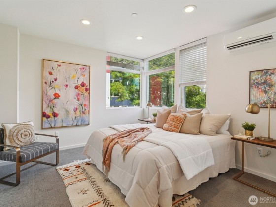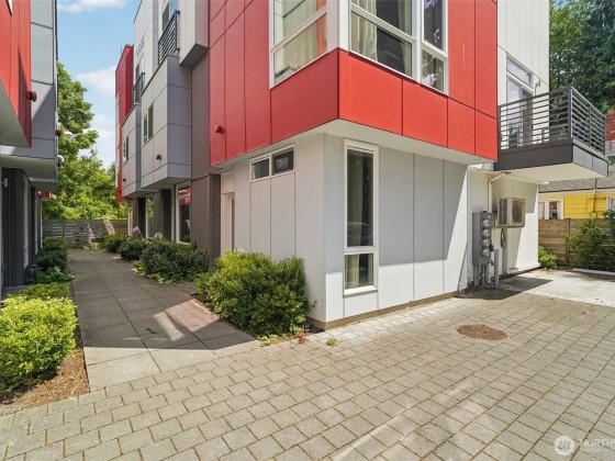 Welcome to this spacious & stylish 2-beds townhome. This end unit offers tranquility, enhanced privacy and appealing roof top views. Enter on the main floor, where you’ll find a welcoming entry area, a private bedroom, a full bath & access to a patio. Perfect for guests and roommates. Upstairs the open-concept living area features walls of windows, hardwood floors, ductless HP mini-split systems & a gourmet kitchen with SS appliances. The 3rd floor is dedicated to the primary suite, complete with a spa-like bath & generous closet spaces. Escape to the large rooftop deck. 1 designated parking space. No HOAS, no sewer capacity charges!