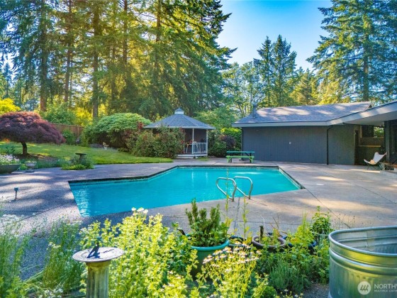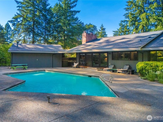 Make this your legacy home! Mid-century custom built 4800 ft2 home sits in the middle of your own private park. Priced for the cosmetic upgrades for Buyer personalization. If you crave tranquility and want to hear the birds sing this 1.5 acre oasis is for you. Built by a local lumber family, first time on the market. Recent 2019 upgrades include new windows, roof, electrical panel and HVAC system. It features 2 main floor primary suites, two large receiving rooms and a great room (before great rooms were fashionable) with a fireplace that overlooks the in-ground pool and a magnificent park-like yard. The lower level is ready to be taken to the next level by the new owners to satisfy their own household needs.