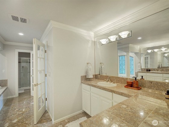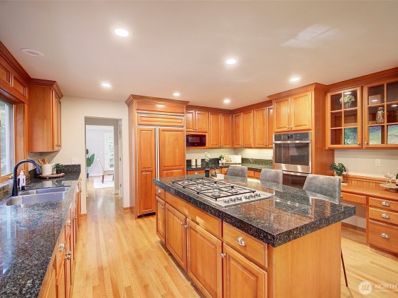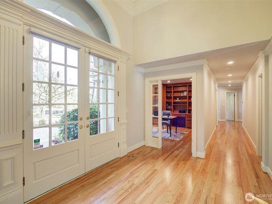 Exquisite home in Canter Green, Bridle Trails. Features 4 beds, 5 baths, formal living/dining, family and bonus rooms, and office/den with built-ins. Light-filled chef’s kitchen with new hardwood floors and detailed millwork. Upstairs includes large primary suite with soaking tub and walk-in, plus a media room with equipment. Second en-suite, two more beds, and updated laundry with dog shower. Central A/C, new water heater, 3-car garage with storage, fresh paint, new carpet, Venetian plaster accents, designer lighting, and recent upgrades throughout. Private 0.82-acre lot backs greenbelt with two patios. Minutes to Microsoft, Google, Spring District, light rail, Bellevue schools, 520, and Bridle Trails Park.