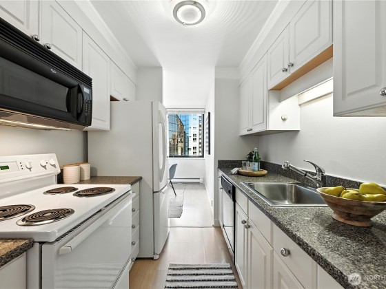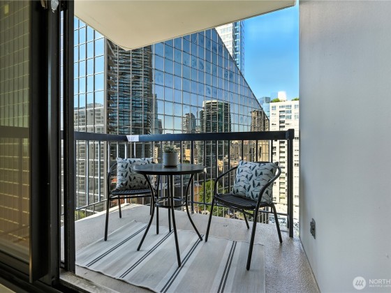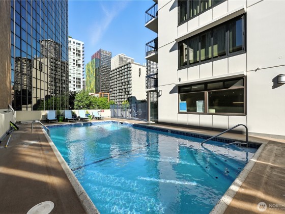 Huge Price Drop! Incredible views of the snd & Olympic Mtns frm this hi-flr immac NE corner 1BR/1BA spacious home! Almost 800sf, freshly paintd thruout, gorgeous, laminatd wood flooring, lovely blinds & circle flr plan for gracious living. Awesome, cov'd deck for ultimate entertaining! Great storage rm off entry. King size bdrm w/amazing views too! Bg amenities incl: gym, party room, outdoor patio w/firepit & BBQs tables & lounge chairs & a fabulous outdoor pool to soak up the sun! On-site mgrs & prof managed. Outstanding location - close to Amazon, Whole Foods, restaurants, coffee shops, retail shopping, Pike Place Mkt, Waterfront Pk, pub trans, bus & more! Perfect 1st or 2nd home in the city! Best price & value for views in downtown!
