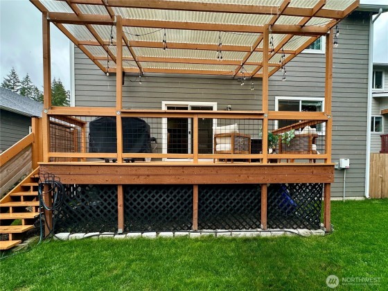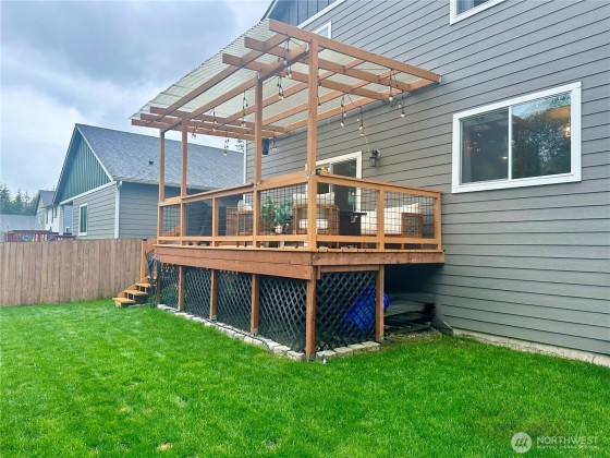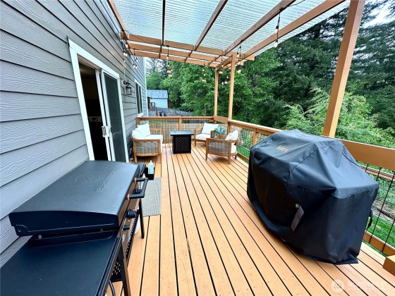 Situated on a quiet culdesac street, this beautifully maintained 3 bedroom, 2.5 bath home offers 2013 sf of modern, move-in-ready living. The main floor features an open layout w/spacious kitchen & pantry, a dedicated dining area, and an inviting living space. Upstairs, enjoy a generous primary suite w/private bath & walk-in closet, plus 2 additional bedrooms and a conveniently located laundry room. Step outside to a fully fenced yard that backs to a serene, undisturbed greenbelt—offering privacy, a peaceful territorial view, and a perfect setting for relaxing or entertaining on the gorgeous deck. Just minutes from Tenino’s shops, parks, and trails, this home offers the best of small-town charm with nearby access to outdoor recreation.