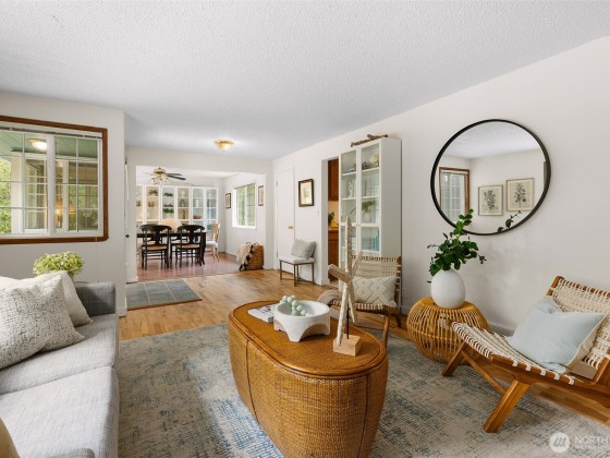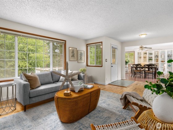 Experience one of the best values on Bainbridge Island—now at a new, more accessible price. Beautifully maintained and full of charm, this home offers two complete living spaces just 10 minutes from Winslow and the ferry. Upstairs features three comfortable bedrooms and welcoming, light-filled gathering areas. Downstairs lives like its own private suite with separate entrance, bedroom-sized flex space, full kitchen, and fireplace. With two fenced yards, distinct decks, and a spacious lawn, it’s ideal for multi-generational living, rental potential, or extended guest stays. Ask about seller-paid rate buydown and preferred-lender options.