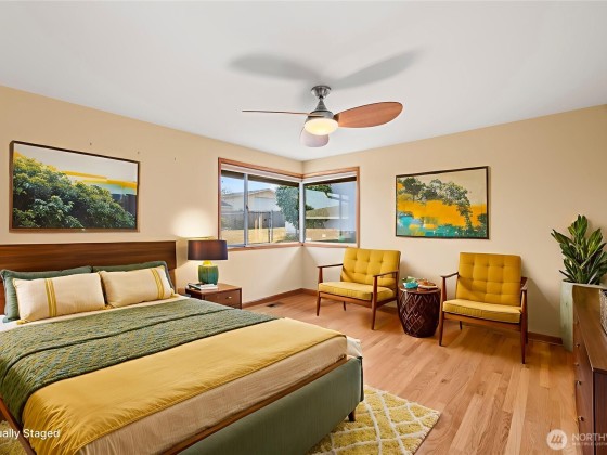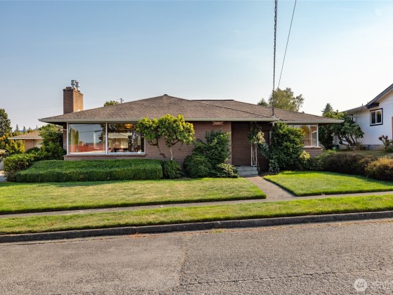 Welcome to your slice of paradise! This charming single-story home with a finished basement offers timeless appeal and breathtaking views of Mount Baker and Padilla Bay through expansive windows, including a stunning large corner window. Nestled in a prime location near town, schools, and the hospital, this well-loved gem combines convenience with serenity. Inside, original hardwood floors gleam, spacious bedrooms provide comfort, and the updated kitchen boasts sleek granite countertops perfect for culinary adventures. Outside you will find mature landscaping, a large detached garage, and expansive driveway offering ample parking for boats or RV's. Meticulously maintained, this move-in-ready home is ready for its next chapter—yours!