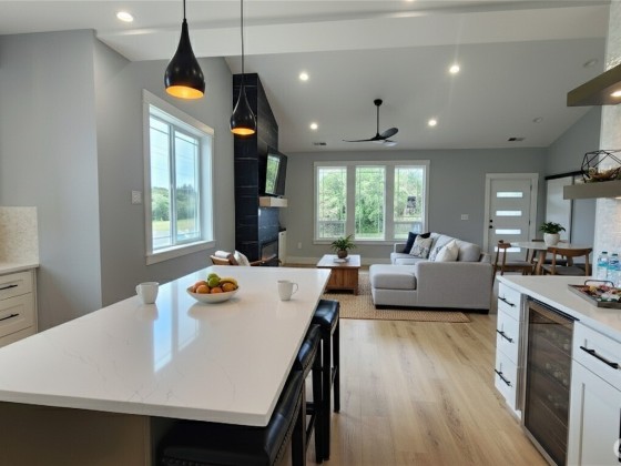 Embrace the Coastal Life with Style! Imagine waking to breathtaking skyscapes while you soak in the Southern sun. Just moments from the soothing waves of nearby beaches. Your days can be filled with leisurely strolls & endless seaside adventures. The gourmet kitchen, boasting quartz counters, a charming shell-like tile backsplash, & underlit floating shelves invites relaxed entertaining. Luxurious bathrooms with designer touches of tile & quartz enhance your comfort. Ducted heating & A/C, AND oversized, heat circulating fireplace with flame color options. Bathed in natural light from expansive windows & airy vaulted ceilings, this home offers the peaceful retreat you've dreamt of. $5,000 Fence Credit, Builder can install.