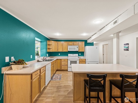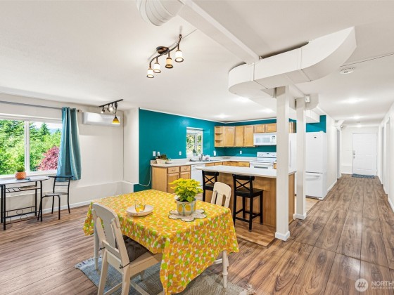 Nestled in peaceful Seabeck, this inviting home offers the perfect blend of comfort, privacy, and flexibility. Vaulted ceilings and expansive windows bathe the living areas in natural light, creating a warm and airy atmosphere. The primary suite provides a private retreat with an en-suite bath and spacious walk-in closet. The fully finished lower level features its own entrance, full kitchen, and bath—ideal for extended living, long-term guests, or multi-generational needs. Step out to enjoy mature landscaping, a large deck, and a welcoming patio designed for summer evenings and entertaining. Just minutes from Hood Canal, Scenic Beach, St. Park trails, and local amenities, this property truly captures the essence of NW living.