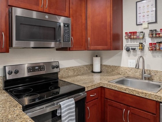 Located in the desirable, gated Sixty-01 community in Bridle Trails, this beautifully updated 1-bedroom townhome offers the perfect blend of comfort, style, and convenience. Home features a unique reverse floor plan with a main-level primary suite, walk-in closet, and full bath. Downstairs, a spacious living room with vaulted ceilings and an office nook opens to a private garden patio. Updated kitchen includes newer SS appliances, granite countertops, and rich wood cabinetry, while fresh vinyl plank flooring and fiber internet bring modern upgrades to daily life. Covered carport with storage and ample guest parking. Resort-style amenities include 24hr security, pools, tennis and pickleball courts, clubhouse, gym and scenic trails.