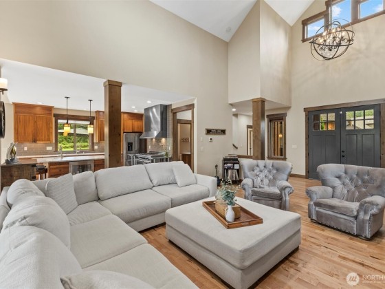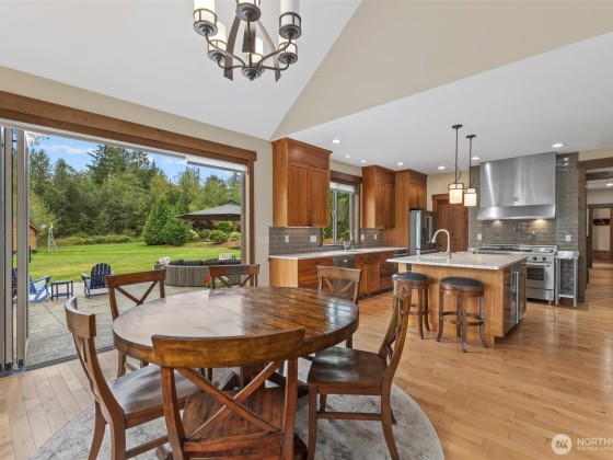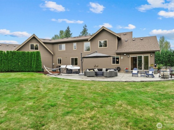 {LOCATED IN THOMASHIRE ESATES, LAKE STEVENS PREMIER GATED COMMUNITY OF 8 CUSTOM HOMES}THIS RESIDENCE SITS ON THE COMMUNITY'S LARGEST LOT SPANNING 3 PARCELS WITH BEAUTIFULLY LANDSCAPED LEVEL GROUNDS IDEAL FOR OUTDOOR LIVING. The open-concept great room and chef's kitchen flow through expansive NANO doors to a custom stamped concrete patio, creating seamless indoor-outdoor entertaining. Main floor living features a spa like primary suite plus a second bedroom with its own private bath, a dedicated office and specially designed mud room. Upstairs offers 2 bedroom's, full bath, large bonus room and an entertainment nook. Extended covered patio with tailored copper firepit. CUSTOM 12x16 SHED. Private gated access to the centennial trail.