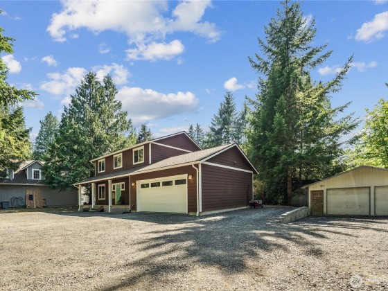 Looking for a retreat with property and a shop, yet still want to be close to everything? Nestled on the Silverdale/Seabeck line, this meticulously cared-for 4-BR home sits on a shy acre, offering the perfect blend of privacy and accessibility. This 10 yr old property features a spacious 2-car attached garage, plus a detached 2-car garage, ideal for a workshop, hobby space, or extra storage. RV/boat pkg avail. Enjoy an expansive yard while being within 10 minutes of top-rated schools, Silverdale’s shopping and dining, and stunning Scenic Beach State Park. Around the corner, discover the awe-inspiring “Eagle Beach,” a hidden gem where photographers gather to capture breathtaking views of multiple eagles soaring and feeding—truly spectacular!