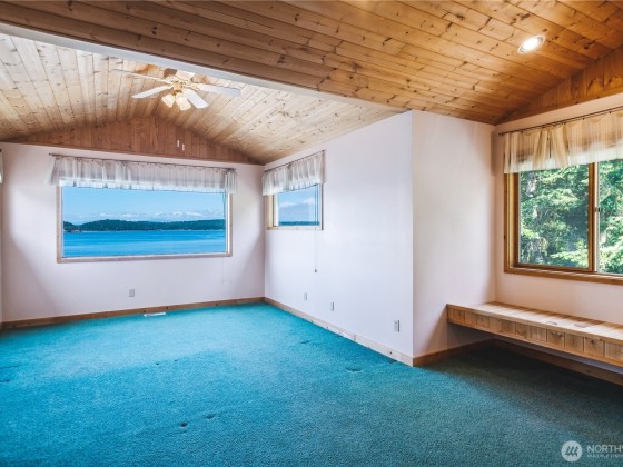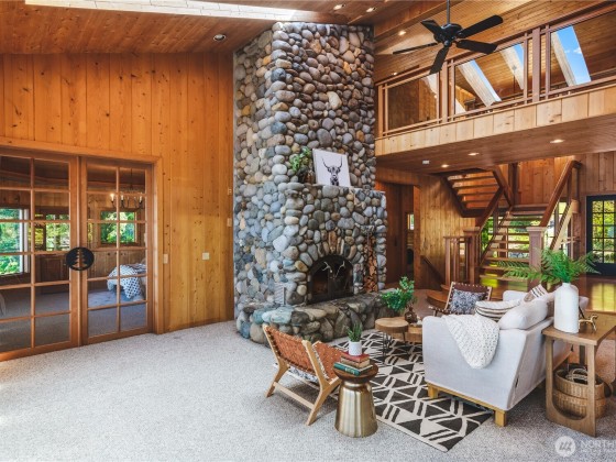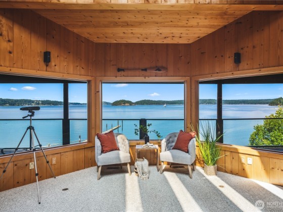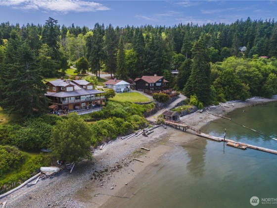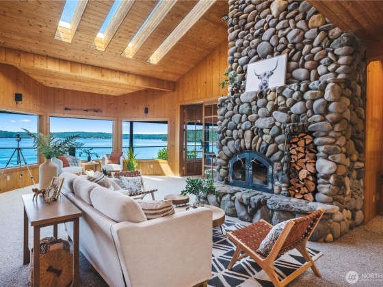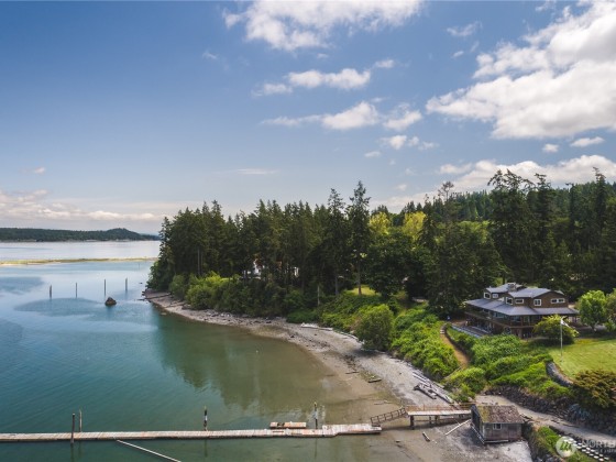 Enchanting custom waterfront masterpiece. Original owners built this truly amazing bayside nest to capture Mt Baker in all its glory. 360 degree covered deck, a soaring river rock frplc, vaulted ceilings & skylights, rich old growth timbers. Glorious sunrise views of Mt Baker from your main floor bed… unreal. Walk your beach, enjoy seasonal shellfish & 800’ of tidelands shared w/ neighbor. Enjoy nearby Anacortes, Oak Harbor, Deception Pass State Park & Trail access for hiking & Mountain Biking out your back door, & a boat launch at Cornet Bay. A gently sloping acre w/ mature trees, grass, & a circle drive w/ a Pathway to your 92’ of wtrfront. Buoy your boat. Lower:3/4 bath with shop, storage,wood stove, toy garage awaiting your upgrades.
