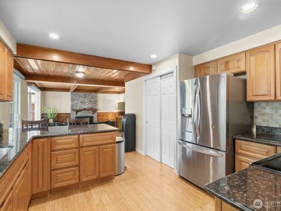 $60,000 Price Reduction! Welcome to this beautifully updated home offering privacy & convenience in a tranquil neighborhood minutes from I-405, Totem Lake, and Juanita Beach. Features 2290 sq ft w/4 spacious BR and 2 BA upstairs, including a Master w/French doors separating sleep/work areas. Remodeled 5-piece bath with soaking tub, shower, and walk-in closet. Main floor offers chef’s kitchen w/SS appliances, granite counters, tile backsplash, and pantry, plus formal dining, powder bath, vaulted living room, and cozy family room w/bay window, and fireplace. Upgrades include remodeled kitchen and baths, new hardwood floors, carpet, entrance door, windows, and fresh paint. A/C. Fully fenced backyard w/covered patio, garden, and fruit trees.