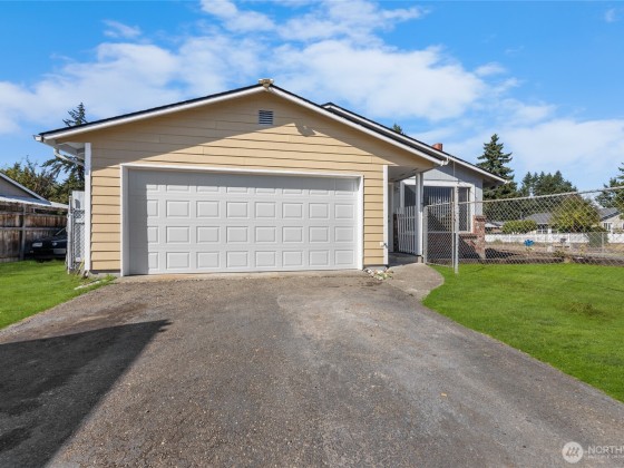 This beautifully charming, 4 bed room, 1.75 bath, home is perfectly positioned on a large, level, fully fenced corner lot with endless possibilities for gardening, landscape, and entertainment. In addition to the attached 2 car garbage you will find ample space for parking outside to include RV and/or boat. Inside you will find a living space warmed by a wonderfully crafted brick wood burning fireplace. Wood flooring flows from the living space into the kitchen and dining. The kitchen is complete with beautiful wood cabinets and white brick accent wall. 4 spacious rooms offer ceiling fans and wall to wall carpet providing warmth and comfort. Primary with tasteful on suite bath. This property provides everything you need to feel at home.