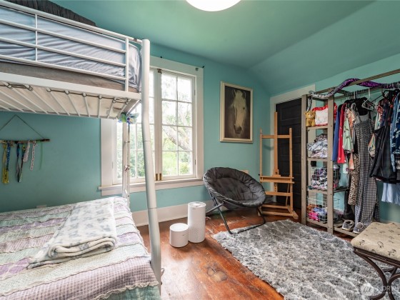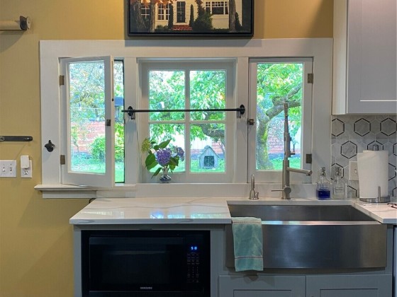 Bask in the tranquil & private setting offered at this farmhouse rich in history rooted by the Mann Family on a 1/2 acre lot. 3 bed + den, 2 bath home boasts modern design w/ original charm. From enclosed porch entry, French doors leads to open living & dining rm w/ wood fireplace, beautifully restored lead windows & built-ins. Remodeled eat-in kitchen w/ cabinets galore, quartz, full backsplash & high end appliances. Bedrooms on upper floor, one w/ private patio overlooking backyard. Full bath on each floor. Spacious mud/laundry room. Unfinished basement & loft offer endless possibilities. Roof & wiring replaced in 2014. 2 car garage w/ plenty off-street parking for toys. Shop, covered deck & patio in backyard perfect for year round fun!