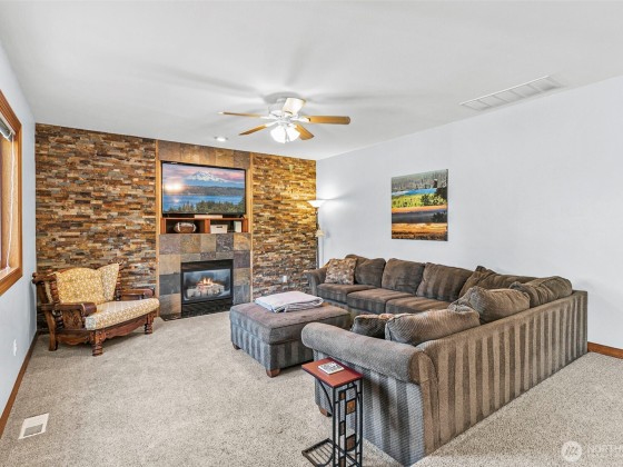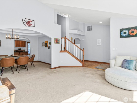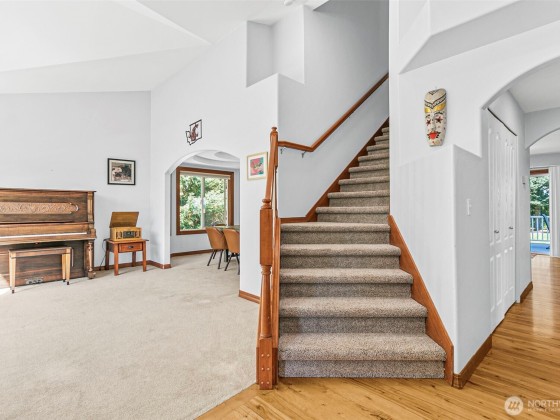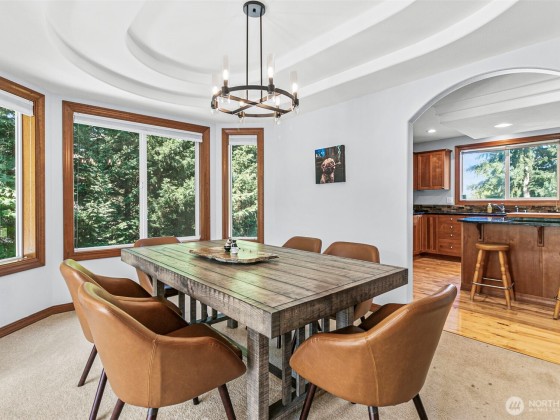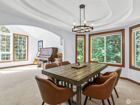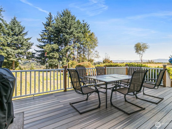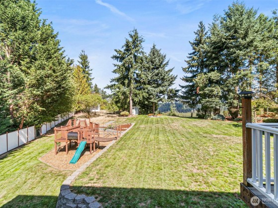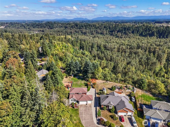 This estate home sits on a private 1.5-acre lot and boasts breathtaking 180-degree Cascade Range views. The main floor features a grand entry with soaring ceilings, a formal living/dining room, new H2O tank, gourmet kitchen with granite counters and a gas range that opens to the family room. Upstairs relax in the sprawling primary suite with a five-piece en suite. The finished basement offers a versatile bonus room, an office & an additional room. Designed for the ultimate entertainer, the backyard is a private oasis with an expansive deck, a fire pit, and a giant play structure. The home also includes RV/boat parking and a three-car garage. Located in the highly desirable Dieringer School District. This is your perfect staycation retreat.
