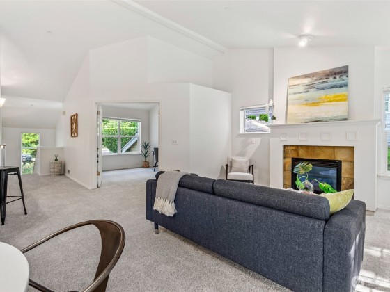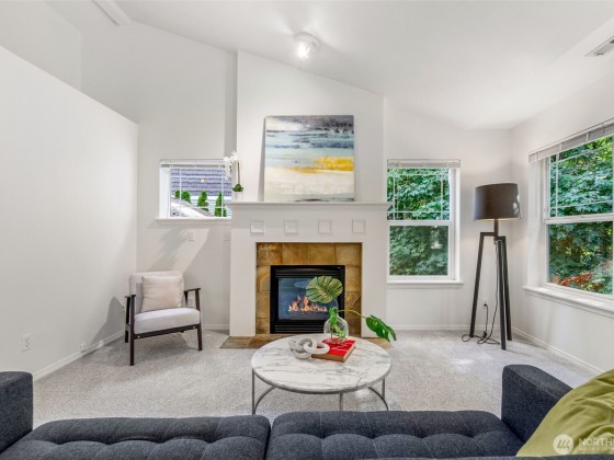 Spacious 3 bed/2 bath townhome-style condo in sought-after Canyon Ridge. Nestled on a quiet street, this light-filled home features vaulted ceilings, large windows, and a cozy gas fireplace open to the dining area and updated kitchen. The primary suite offers a walk-in closet and 5-piece ensuite. Relax on the private balcony overlooking a peaceful greenbelt, perfect for morning coffee or unwinding after a long day. Fresh paint and new carpet throughout, plus updated baths and attached 2-car garage for added storage space! Nearby shopping, and easy I-405 access, this home blends comfort, style, and convenience in a prime location.