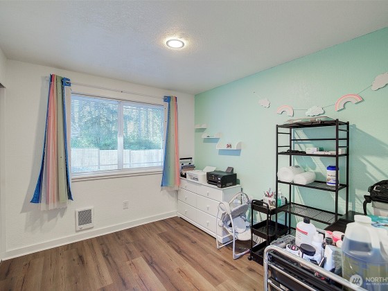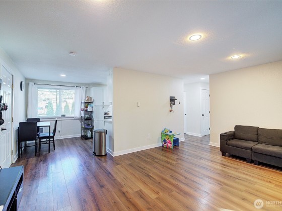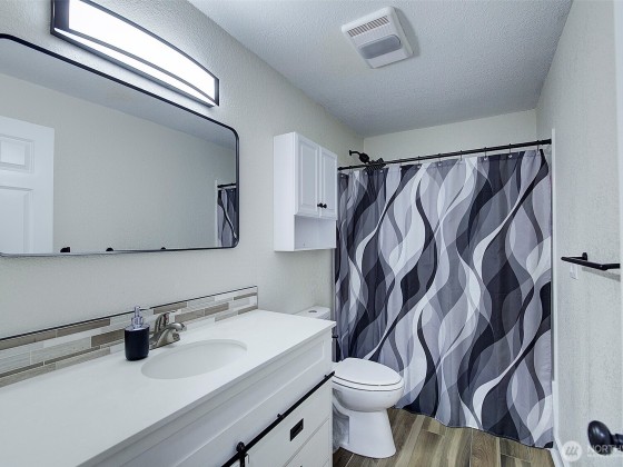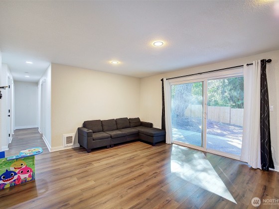 Nestled on a serene greenbelt lot just blocks form Bradley Lake Park. This stunning 2023 remodel blends style and convenience. The kitchen shines with Shaker cabinets, quartz counters, tile back splash and stainless appliances. Enjoy 3 spacious bedrooms with ample storage, plus a beautifully updated bathroom. Every detail has been refreshed- roof gutters, windows flooring,mil work fencing, landscaping and more. Finished garage offers room for hobbies or toys .. Ideally located minutes to freeways, schools,dining., Wild Wood Park and Pierce College. Come make this house your home!