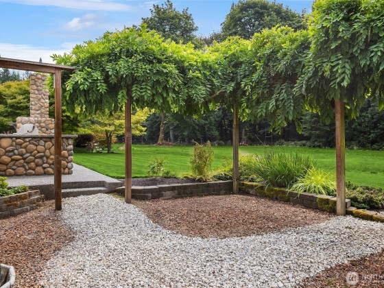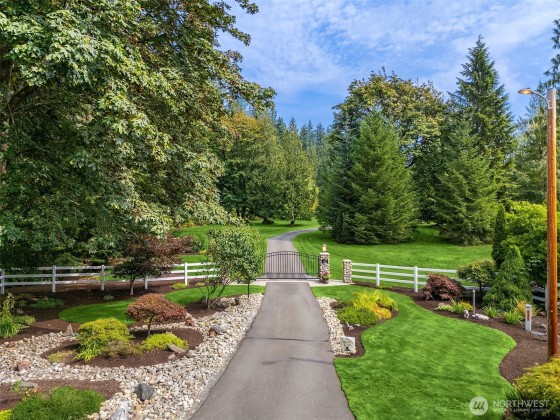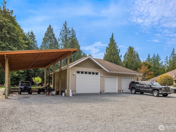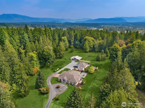 Experience refined comfort in Eagle Ridge’s gated community. This 2,917 sq ft rambler sits on 5.64 peaceful acres, blending luxury with everyday ease. The home offers 4 bedrooms, 2.5 baths, and versatile living spaces including living, dining, great room and rec room. The primary suite features a cozy fireplace, while the chef’s kitchen with stainless appliances and walk-in pantry flows seamlessly to outdoor living with a fireplace and plumbed BBQ. With AC, vaulted ceilings, peaceful water feature, private gated drive, 2-car garage, and 3-bay shop with RV carport, this property combines elegance, space, and privacy.