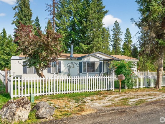 Welcome to this spacious 2003 manufactured home near beautiful Waitts Lake! Bright and open inside, this property is ideal for year-round living, a weekend retreat, or even a short-term rental opportunity. The community offers private lake access (with voluntary HOA membership for just $170/year), which includes use of the beach, park, dock and boat launch. Outside, the flat lot is enhanced with sprinklers, flowering plants, and fruit tree, raspberries and blackberries. Relax in the gazebo and watch the wildlife. A detached garage with shop space provides ample space for projects, toys, or storage. Bring your kayaks, small boat, RV, or 4-wheeler, this property is the perfect basecamp for embracing everything Waitts Lake has to offer.